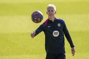 此前,巴萨方面表示,奥尔莫因身体轻微超负荷,一直进行单独训练。奥尔莫也因此缺阵了甘伯杯的比赛。